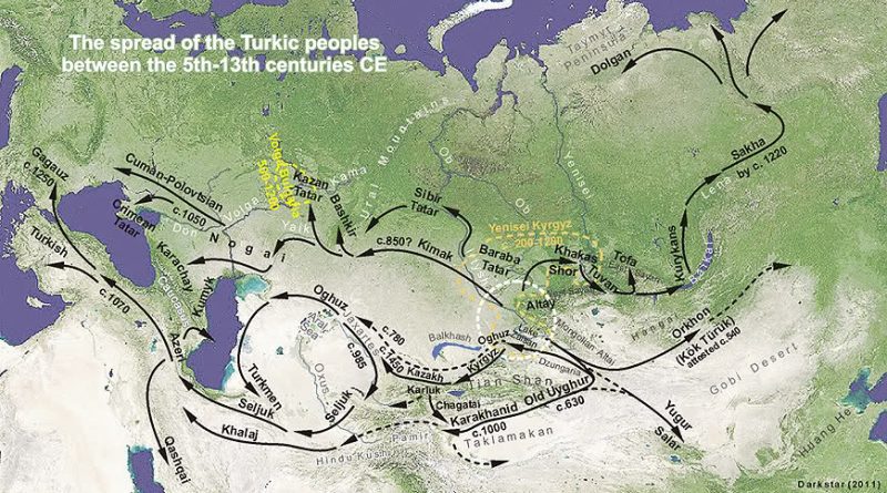 5. – 13. yüzyıllar arasında Türük boylarınıŋ yayılımı.